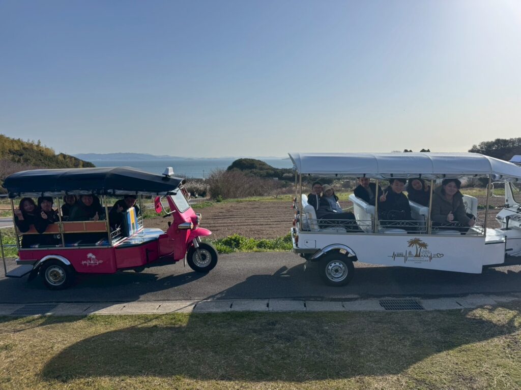 提携する農地まで足を伸ばし、南知多の豊かな景色を眺めながら