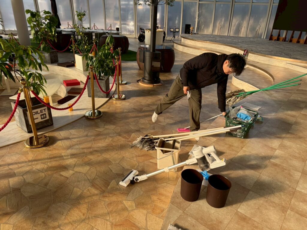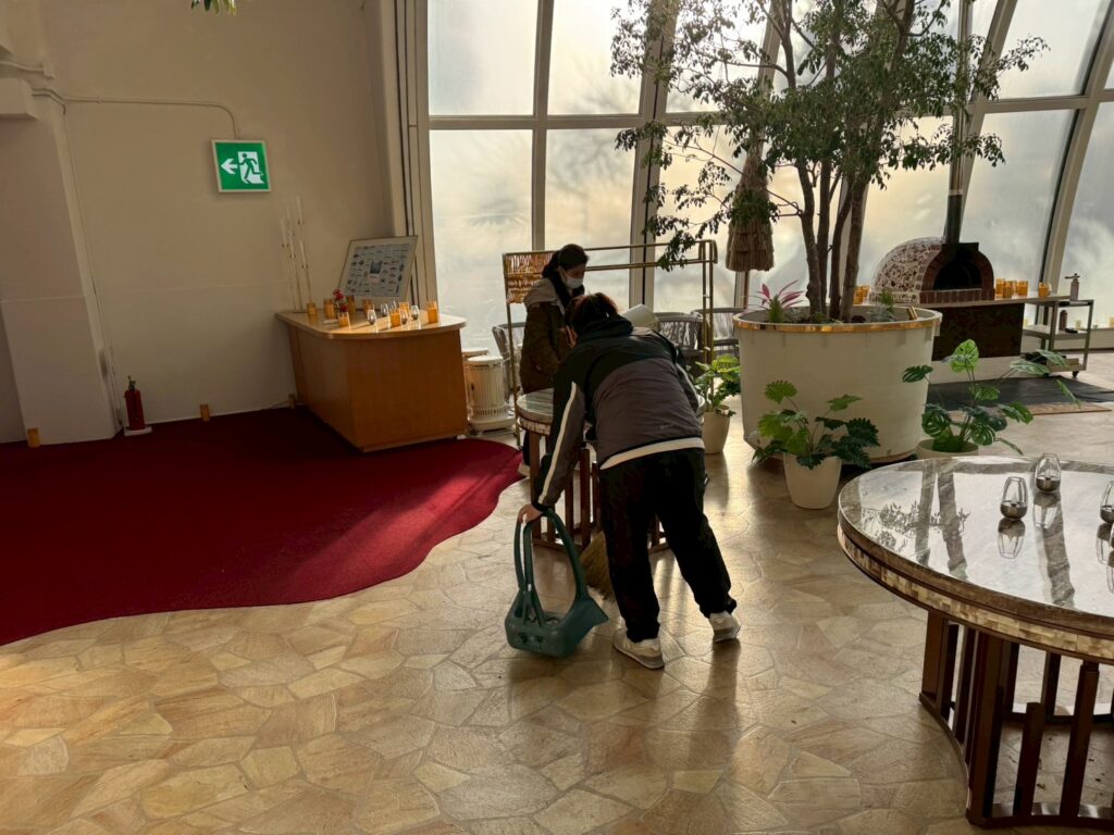 ドーム館内の清掃や周辺の落ち葉拾いなどを行いました。
